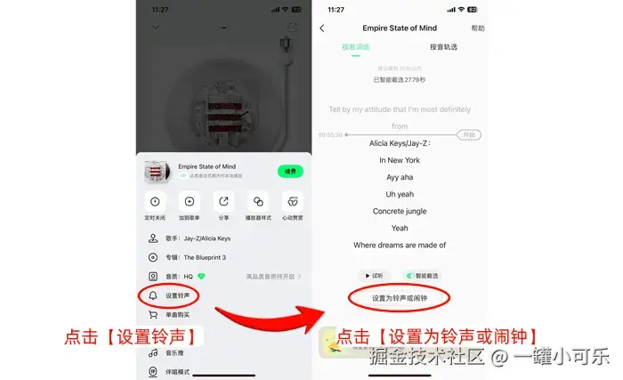 步骤2:在歌曲的播放界面中,进入设置选项,点击 【设置为铃声】 ,再选择铃声的设置模式即可。