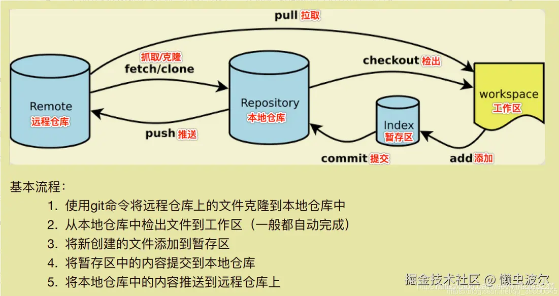 - Remote:远程仓库,存储在远程服务器上的Git仓库,通常用于团队协作和版本共享。