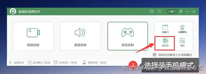 步骤1:在电脑上安装好数据 蛙录屏软件,进入软件首页,找到并点击 【录手机】 模式。