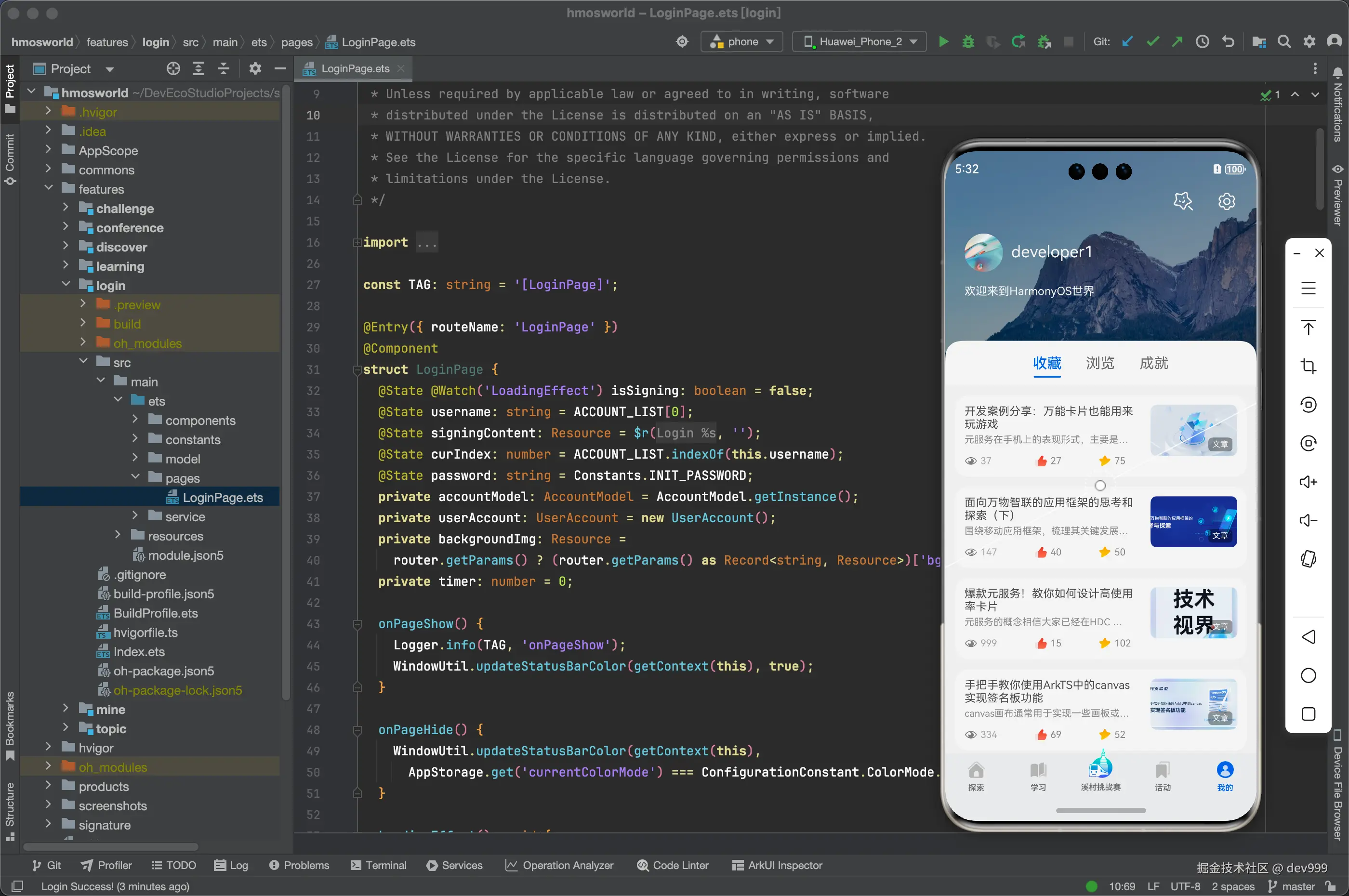 以下是我运行的HarmonyOS提供的一个实践案例“HMOS世界”APP,展示了HarmonyOS 2D特性在实际开发中的运用。
