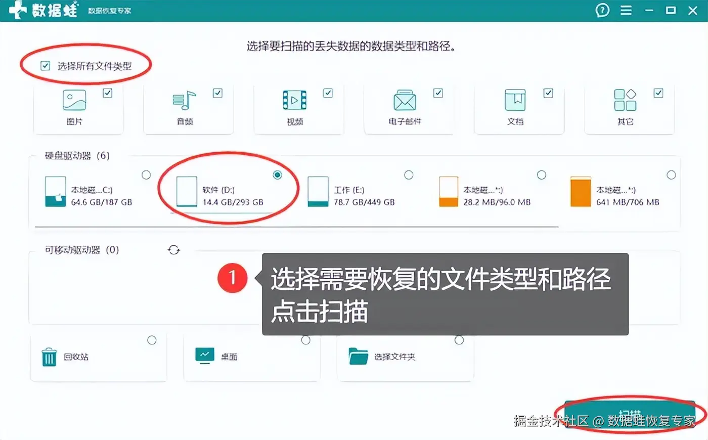 当你的回收站数据已经清理,并且在没有备份数据的情况下,被删除数据将变得岌岌可危。怎样找回删除的文件?不用担心,市面上有许多可供我们使用的工具,例如【数据 蛙恢复专家】,它可以将你的电脑数据深度扫描与挖掘,最大限度帮助你找回丢失的文件。它支持各种类型的数据,包括常见的照片、文档、音视频等。你可以按照下面的步骤尝试操作: