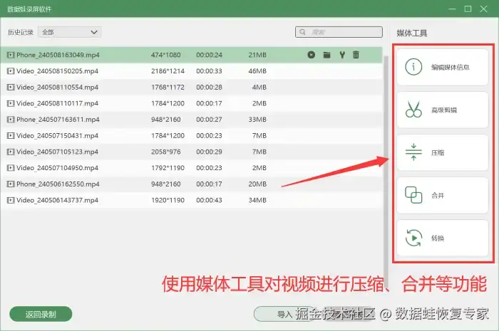 除了苹果手机自带的录屏功能外,还有一些专业录屏软件也值得推荐,能够更加高效地为我们解决苹果手机录屏没有声音怎么办的问题。其中,数据 蛙录屏软件就是一款功能强大、操作简便的录屏软件,支持在录制屏幕的同时录制声音。数据 蛙录屏软件主要特点包括: