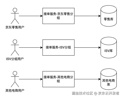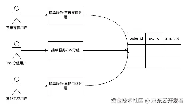随着业务的发展,我们对外提供的服务往往会支撑多业务,多租户,所以这个时候我们会按照业务进行数据隔离;比如我们组产生的物流订单数据业务方就包含京东零售,其他电商平台,ISV等,为了避免彼此的影响我们需要在存储层对数据进行隔离,数据的隔离可以按照不同粒度,第一种是通过租户id字段进行区分,所有的数据存储在一张表中,另外一个是库粒度的区分,不同的租户单独分配对应的数据库。