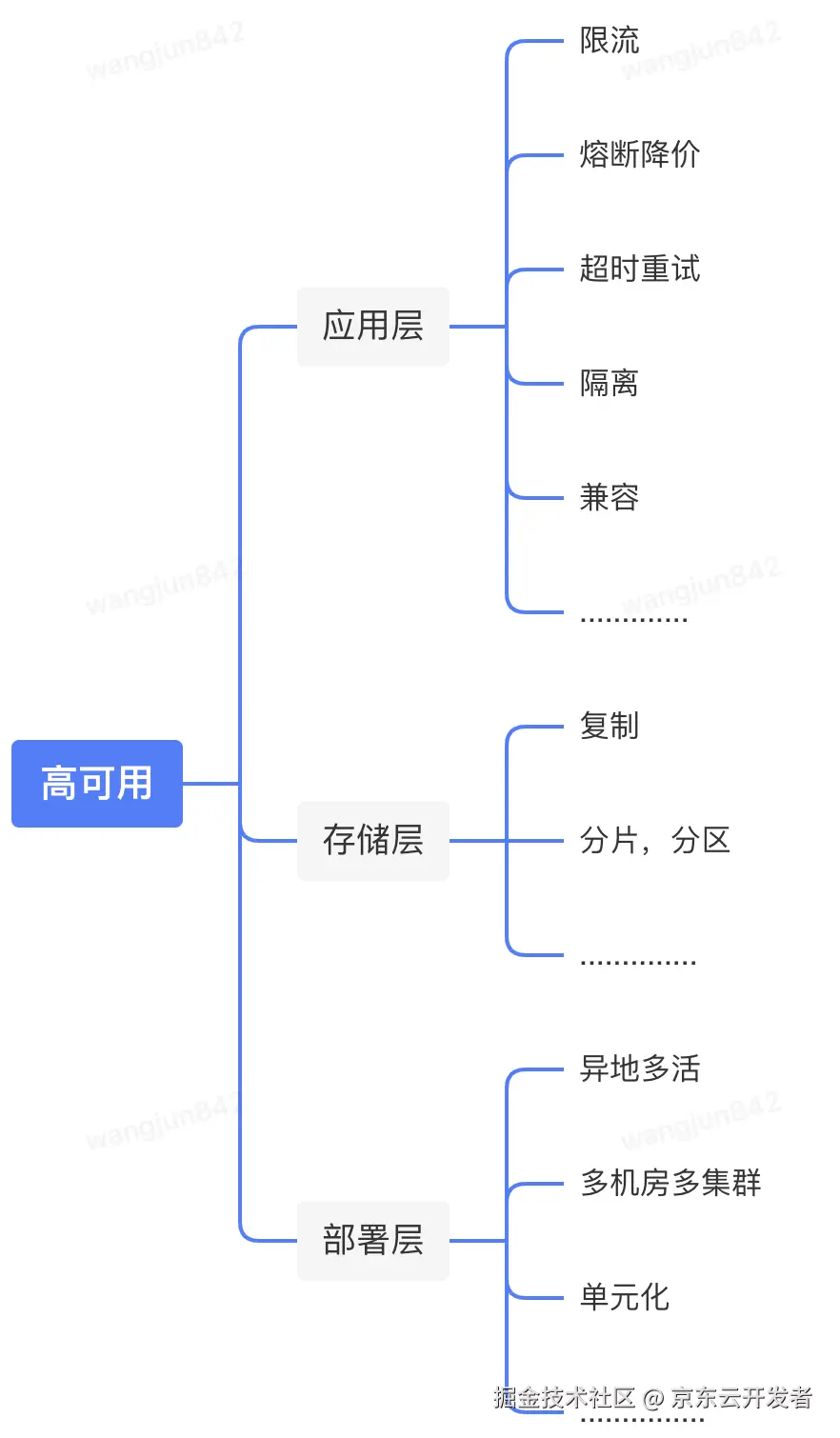 保证系统的可用性是系统建设中的重中之重,如果没有可用性,高性能和高并发也无从谈起,高可用的建设通常是通过保护系统和冗余的方法来进行容错保证系统的可用性。本篇主要从三个维度:应用层,存储层,部署层谈下可用性的建设。应用层的内容来自我的另一篇文章: sd.jd.com/article/336…
