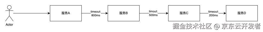 超时时间在设置的时候需要遵循漏斗原则,从上游系统到下游系统设置的超时时间要逐渐减少,如下图所示。为什么要满足漏斗原则,假设不满足漏斗原则,比如服务A调取服务B的超时时间设置成500ms,而服务B调取服务C的超时时间设置成800ms,这个时候回导致服务A调取服务B大量的超时从而导致可用率降低,而此时服务B从自身角度看是可用的;