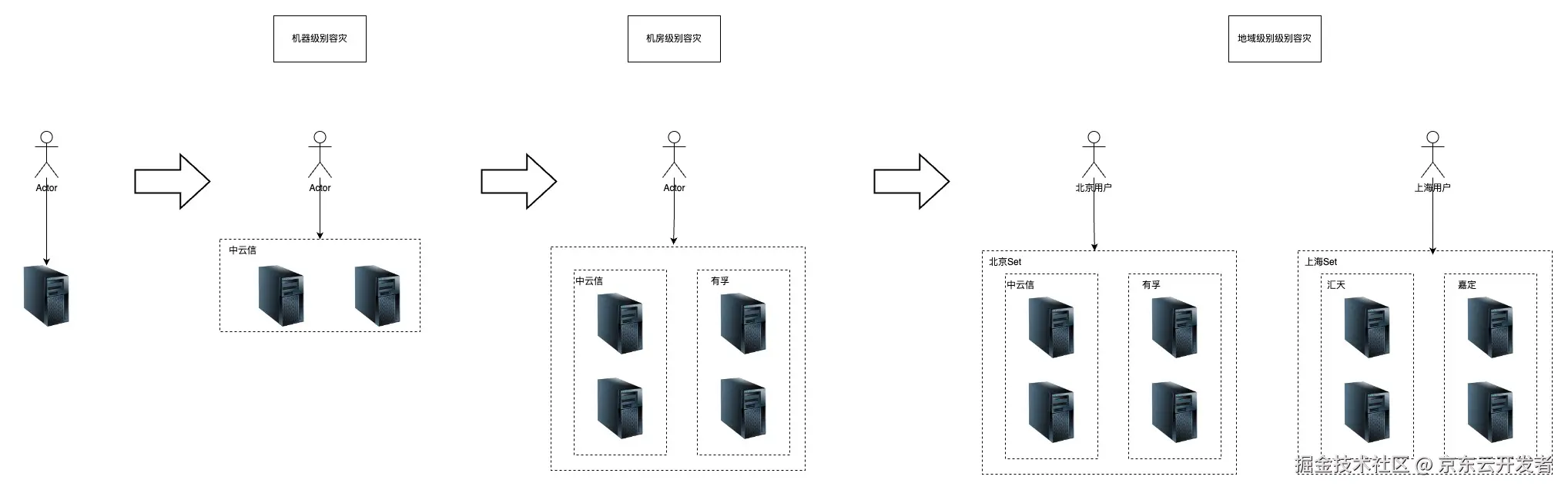部署层是通过不断突破单机器,单机房,单地域,做到机器级别,机房级别,地域级别的容灾来保证系统的高可用。核心思想是通过冗余以及负载均衡进行容灾保证高可用。