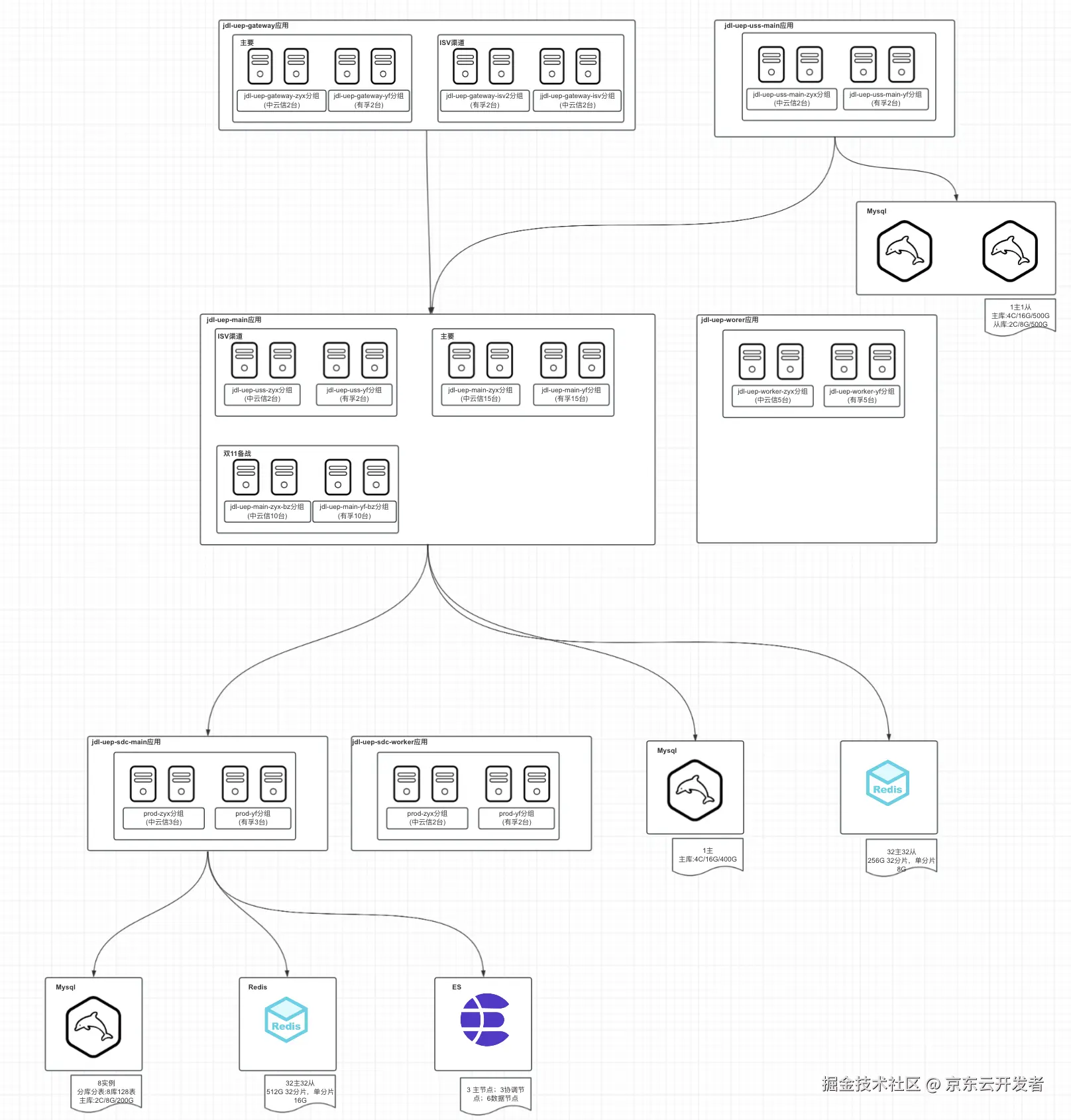 以上三种系统是需要进行隔离建设的,因为他们的衡量指标及对资源的使用情况完全不一样的,比如我们小组会将在线系统作为一个服务单独部署:jdl-uep-main, 离线系统和近实时系统作为一个服务单独部署:jdl-uep-worker;
