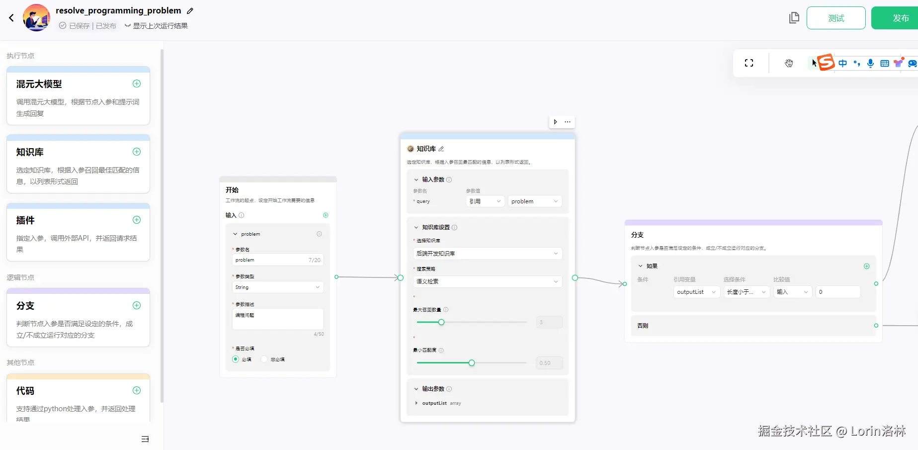 - 当问题属于编程相关问题时,启用工作流,首先使用知识库进行回答,若知识库无法回答,则使用内置大模型回答。