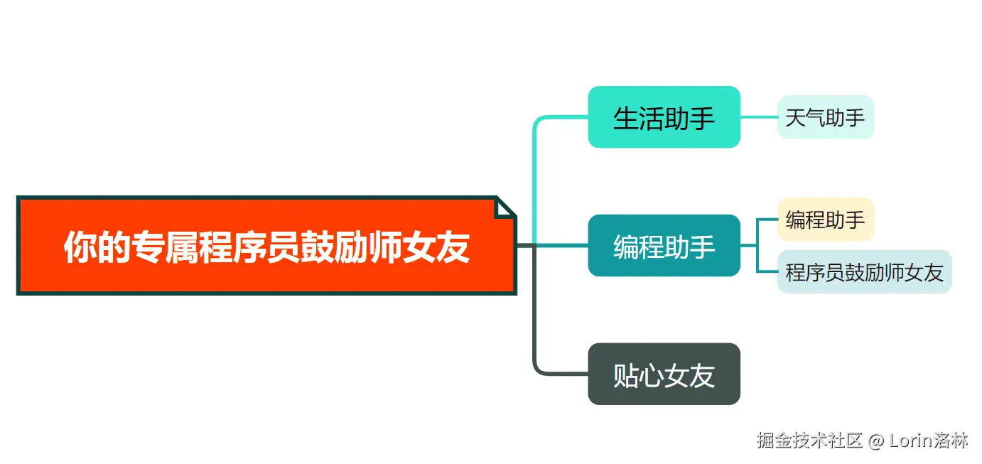 - 开始构建专属程序员鼓励师女友时,我们首先需要进行功能设计,经过采访108名单身程序员后,我设计了下面几个功能:生活助手、编程助手、贴心女友