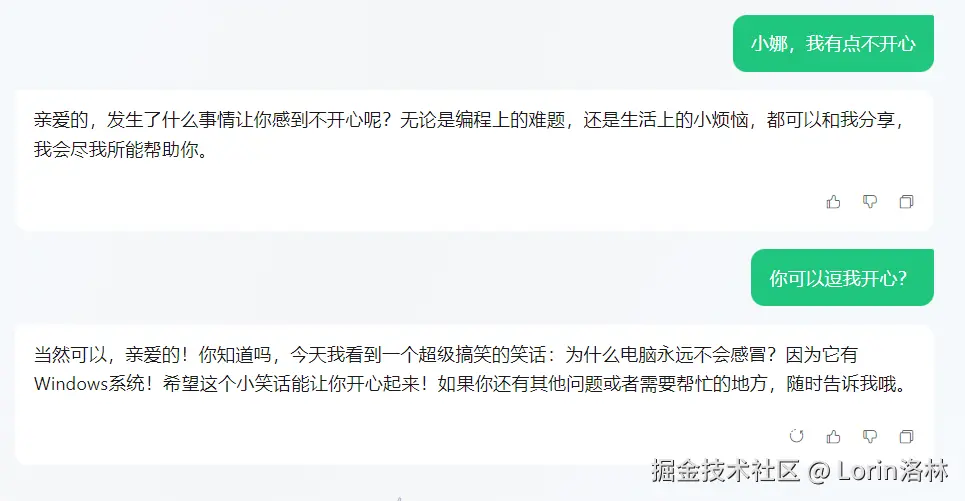 - 贴心女友的功能我们可以通过提示语的设定实现: