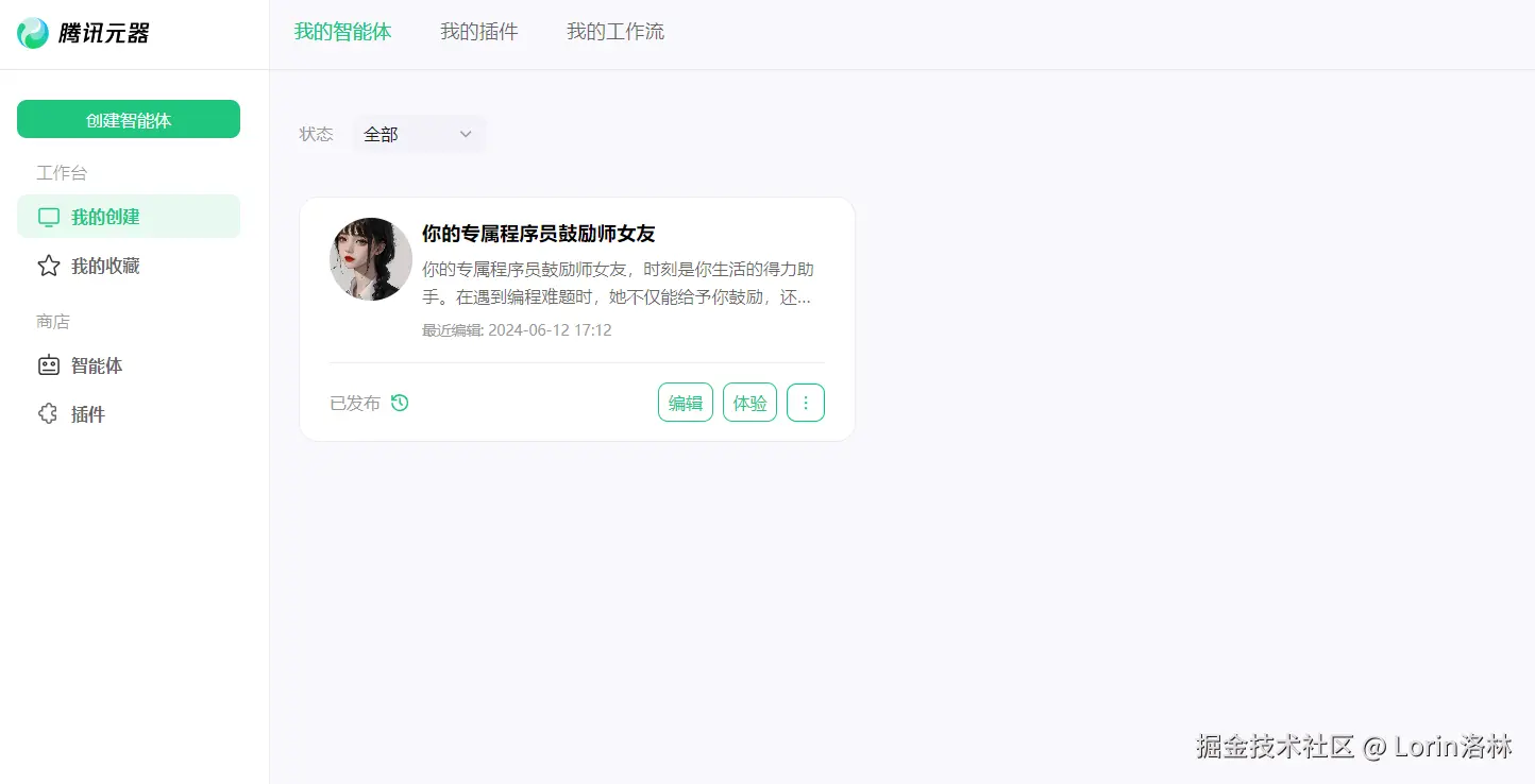 使用 腾讯元器 搭建你的专属程序员鼓励师女友