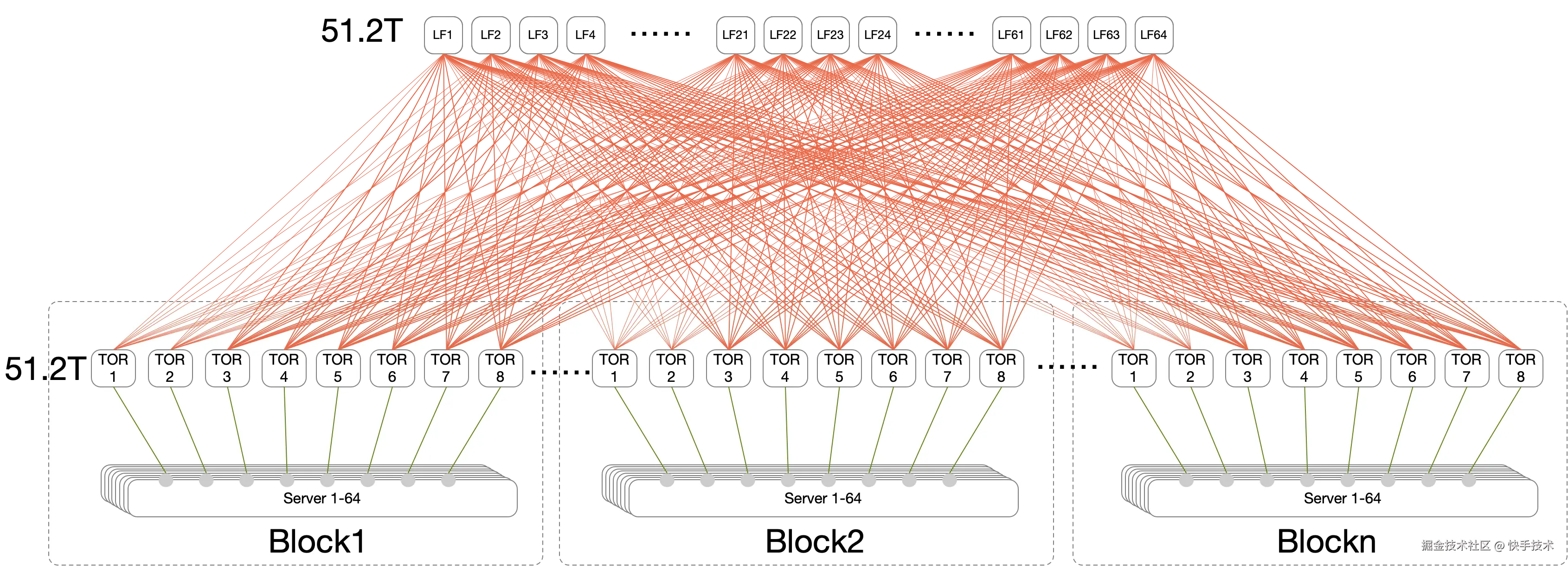 快手自研51.2T交换机不仅是常规数据中心网络场景下的理想选择,更在AI算力集群中扮演了核心枢纽的角色。通过深度整合RoCEv2端到端解决方案,快手成功构建了万卡级大模型集群网络,更率先在国内行业里实现了400G RoCEv2高性能网络的部署应用!这一举措不仅与业界传统IB网络方案在性能上并驾齐驱,更实现了成本的大幅削减,降幅超过80%。