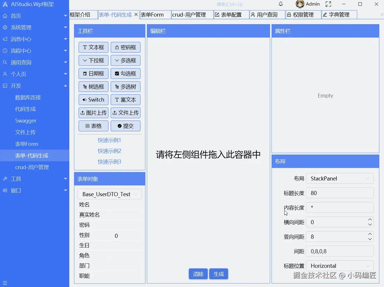 点击生成即可,重新启动客户端即可快速预览(前提是服务端也用代码生成器生成(在web端的代码生成器)了相应的控制器与接口)
