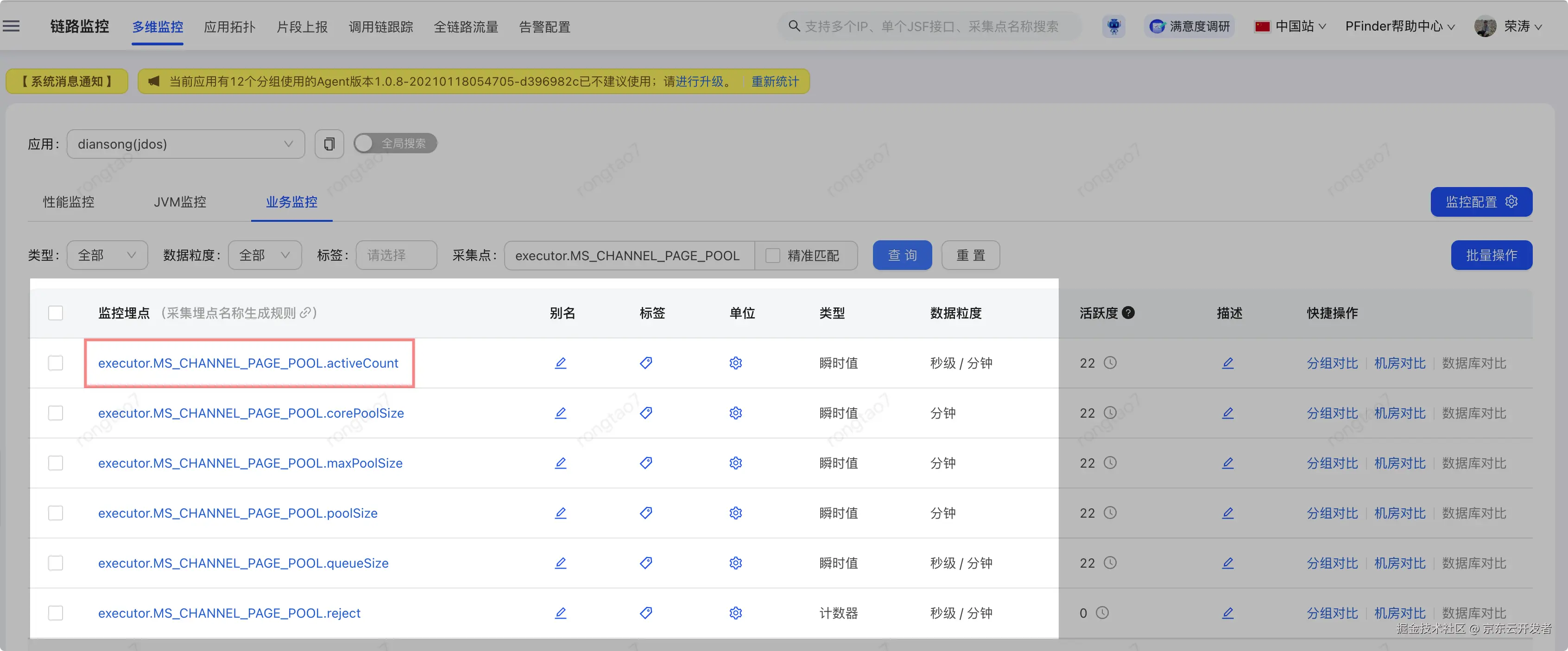 •线程池监控 - PFinder, key格式为:executor.线程池名称.线程池状态(活跃/核心/最大线程数、队列大小、拒绝任务数)