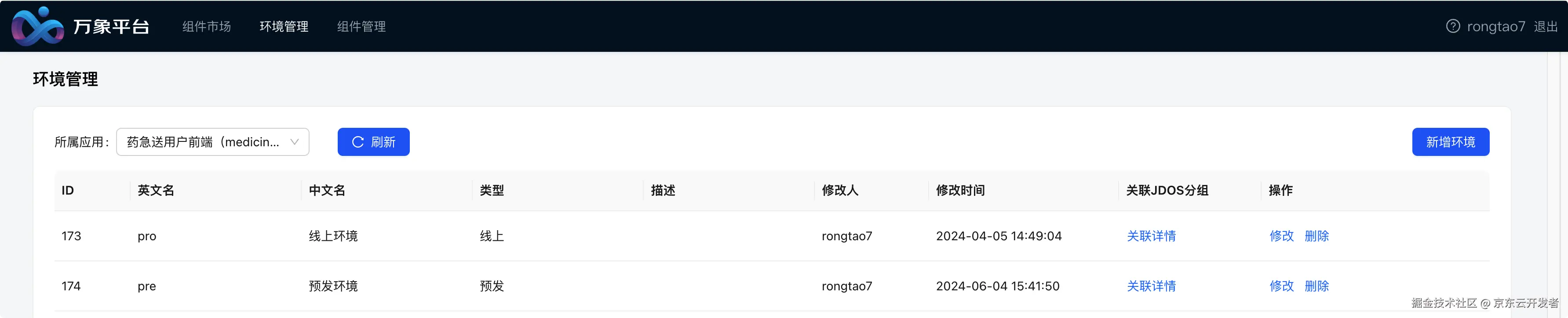 1)创建万象环境:第一次接入需要创建预发和生产环境。