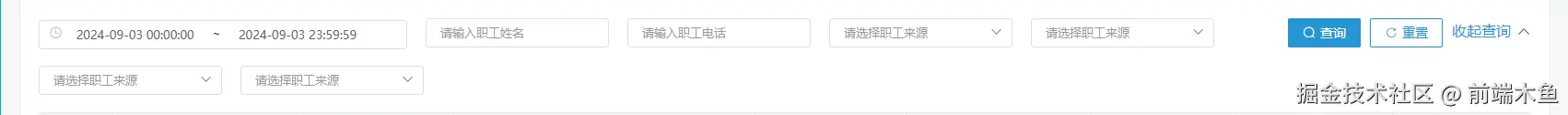 此为初版搜索栏组件,与表单并无太大关系,所以我起的组件名字是 searchWrapper——搜索栏容器。起因是有一天UI突然要统一项目样式风格,要求搜索栏区域内容较多时可以折叠/展开。正常来说是没有毛病的,但是对于当时的项目就很有毛病。(火气要上来…)
