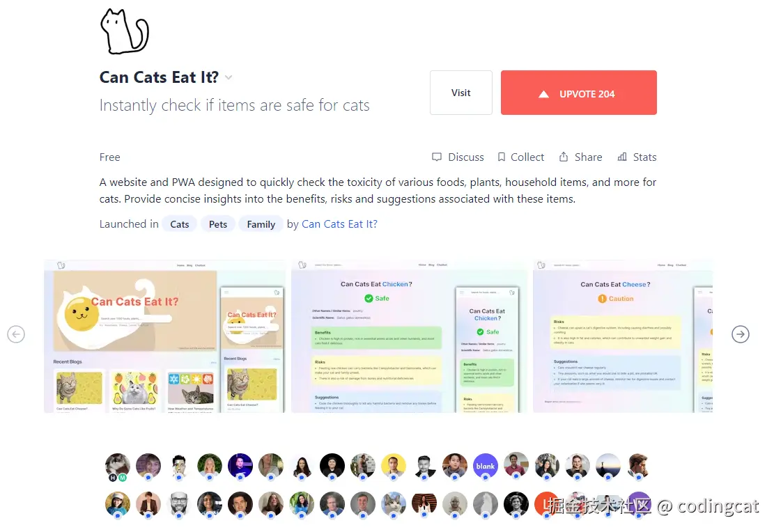 比如在我浏览列表的时候,一只猫咪的logo成功吸引了我的注意。一看产品名称和描述我就知道这个产品是干嘛的了。这可爱的logo让我忍不住点进去了解更多。