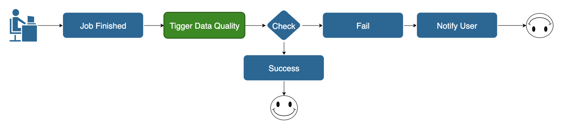 在没有数据质量模块之前,用户在任务执行结束后需要人工去检测生成的数据的质量,比如手动去执行一些检测SQL来判断数据质量。