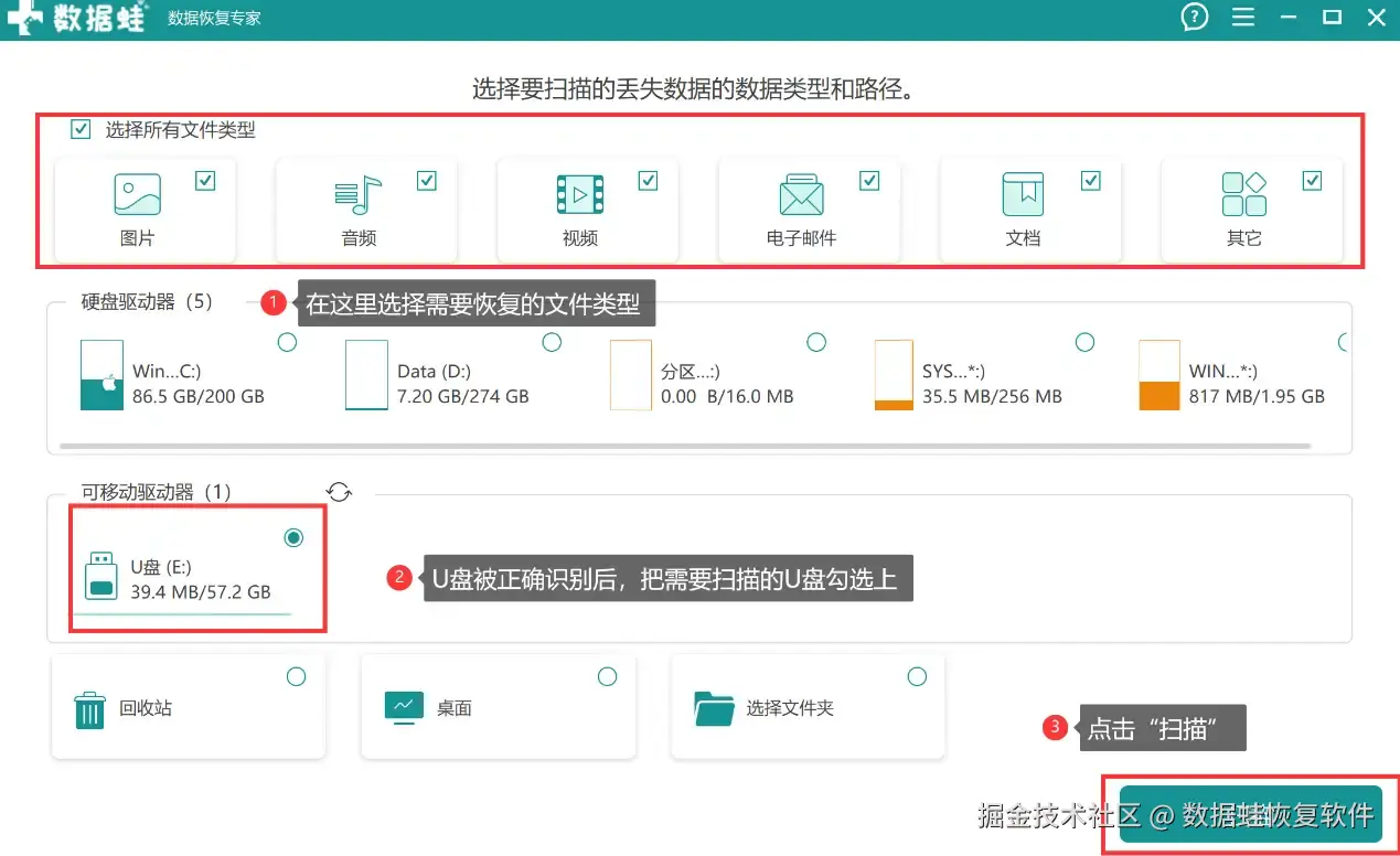 如果您是一位电脑小白,想要减少繁琐的步骤,可以选择数据 蛙恢复专家,这款软件能够应对大多数情况的数据丢失,是你数据恢复的不二选择!