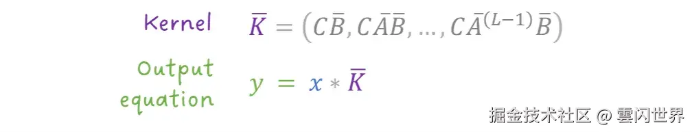 核由矩阵C和离散化矩阵A和B构成。请注意,核的长度与输入序列相同。核与输入x卷积以获得输出y。为了使输出的序列长度与输入相同,通常会对输入进行填充。
