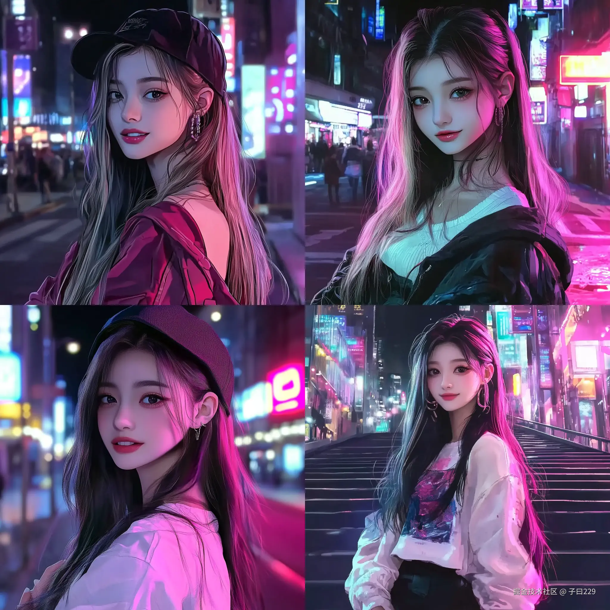 Midjourney提示词:欧美动漫风格,一位美丽的少女,身穿时尚的街头服饰,背景是现代都市的霓虹灯,Cartoon --version 6.1