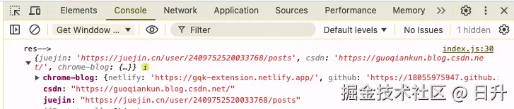 在控制台中选择当前插件,即可查看获取的 window 下的 MyBlog 对象