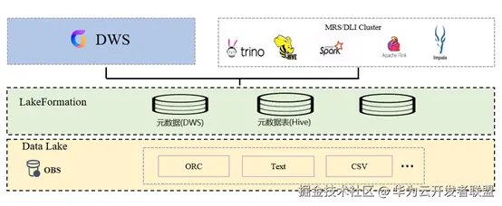 DWS 对接元数据服务,Hive MetaStore、Lake Formation 元数据管理,可直接访问数据湖的数据表定义,与开源数据无缝对接,无需创建外表,自动感知 DLL 变化。DWS 支持主要的开源数据格式有 ORC,、Parquet、Hudi、Carbon、CSV。其中对于 Sql on Hudi,可进行增量查询及导入方式,既支持实时链路的增量分析,也可以支持离线链路的批量分析。