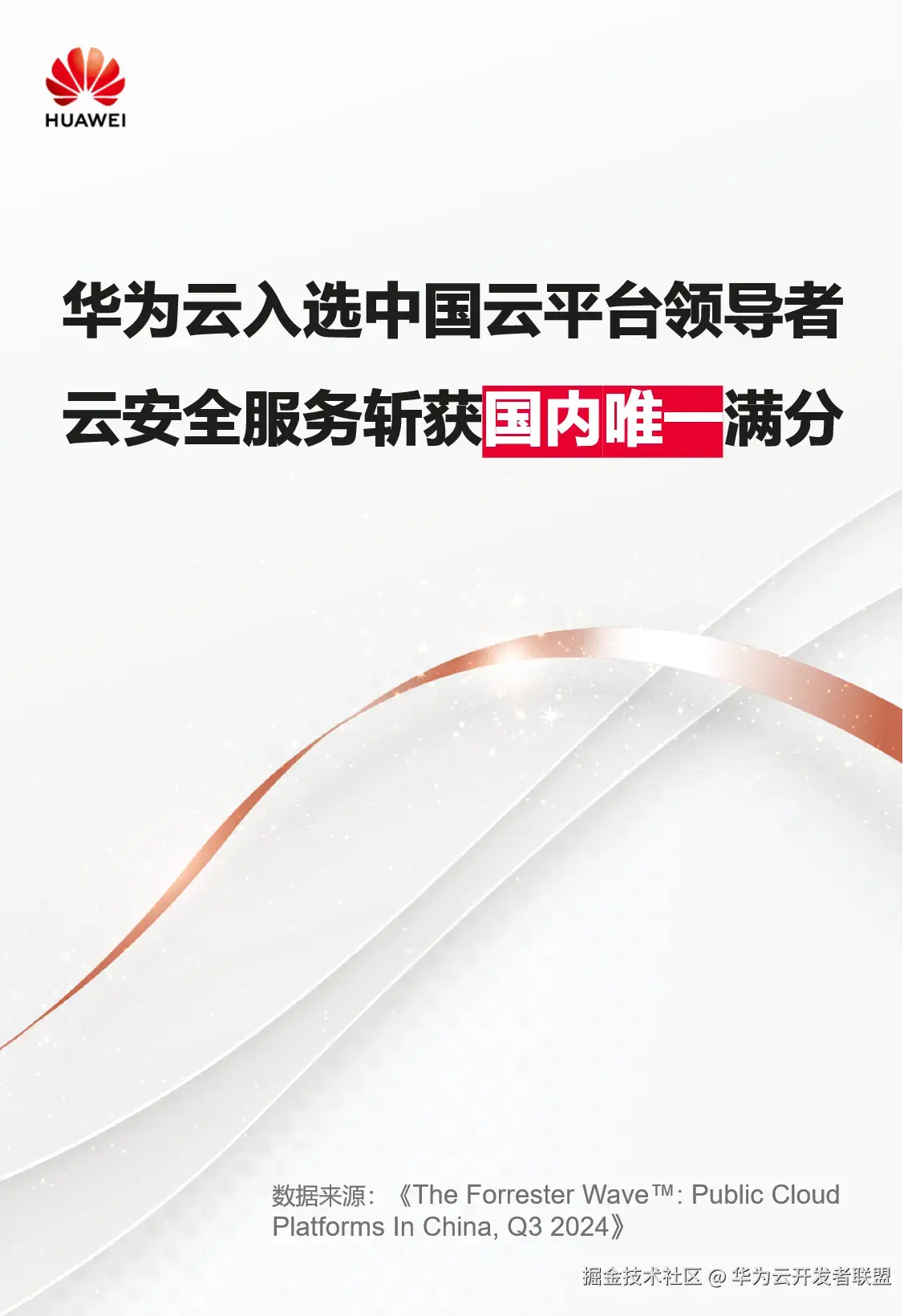 近日,国际权威研究机构Forrester发布了《The Forrester Wave™: Public Cloud Platforms In China, Q3 2024》报告。报告对中国主流公有云厂商从战略、产品和市场格局三个维度进行了全面评估,华为云入选中国云平台领导者,云安全服务斩获国内唯一满分(5分)。