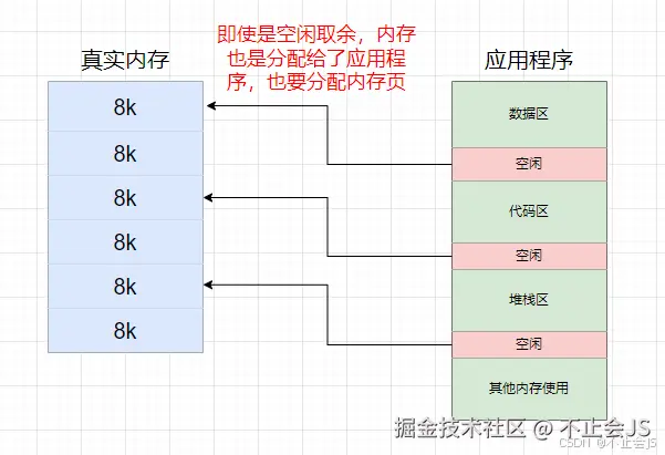 操作系统会分配给一个应用程序固定的内存大小,即使是页式内存管理下也不例外。但一个应用程序通常不会完全使用操作系统分配的内存,当操作系统为应用程序没有使用的内存分配物理内存页时,便会造成内存浪费。