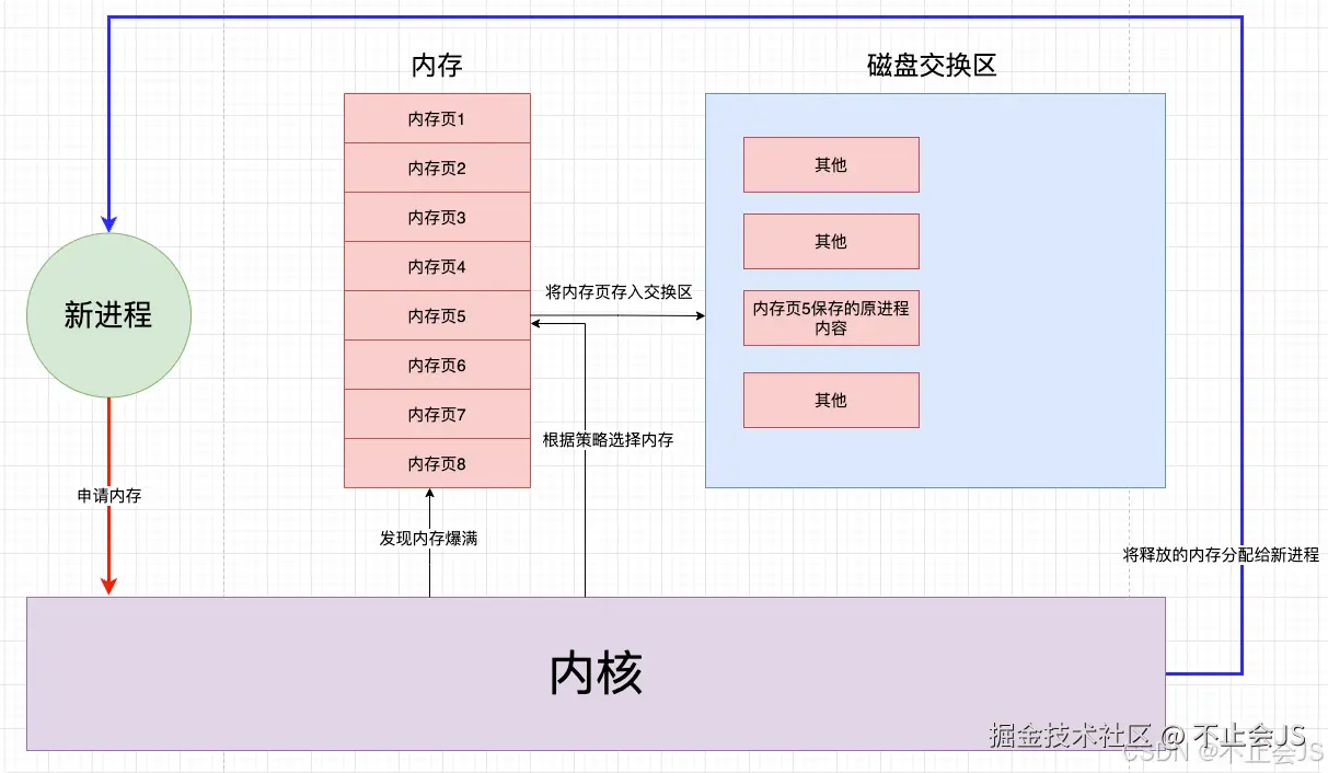 不过这样做并非没有缺点,当原继进程被访问时,仍需要从磁盘中将原数据读取出来,并重新按照策略分配内存,整个过程比较耗时,造成无端的消耗。并且从磁盘空间被划分的这份交换区本质和其他磁盘部分没有任何区别,磁盘的IO速率相较于内存空间来说,速度极慢,当大量内存页保存进交换区后,频繁的进行磁盘IO会极大的减慢整个操作系统的运行速度。