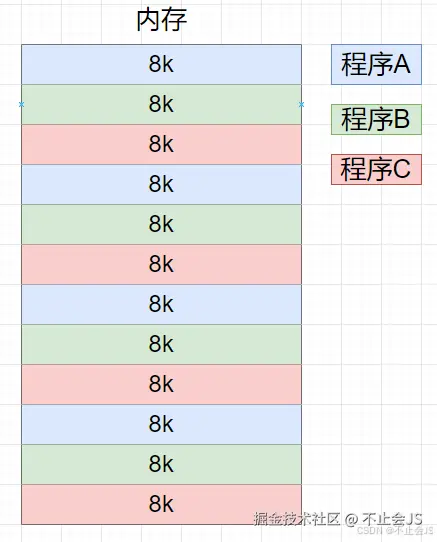 操作系统将内存分配8k或4k大小的内存页,我们这里称其位物理内存页,当一个应用程序启动时,操作系统将不会在刻意的给其分配连续的内存空间,而是随机分配给应用程序不一定是连续的内存页。