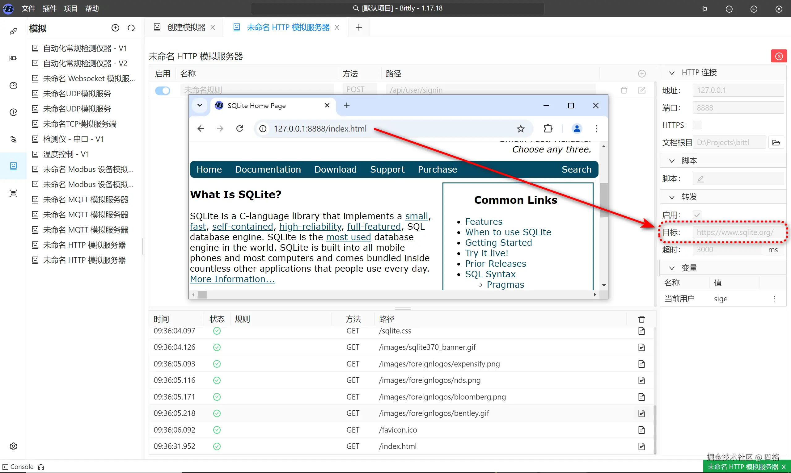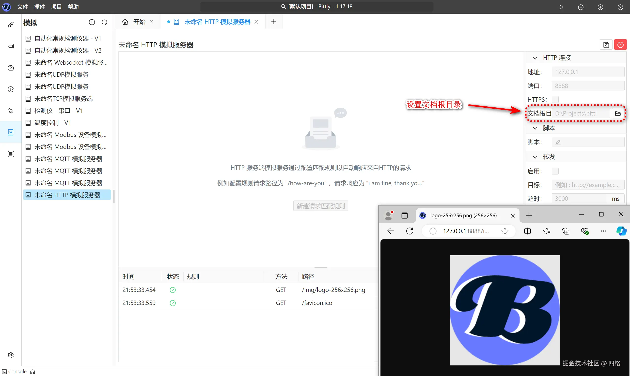 Bittly 支持在本地创建 HTTP 服务器。通过配置该服务器,可以根据匹配规则自动响应 HTTP 请求,并通过变量和脚本实现动态数据内容的响应。此外,Bittly 的本地 HTTP 服务器还支持配置文档根目录,直接将指定路径作为 Web 目录进行访问,无需配置完整的 HTTP 服务器。Bittly 的 HTTP 服务器还支持将请求转发到其他 HTTP 服务,并记录每次请求和响应的内容。