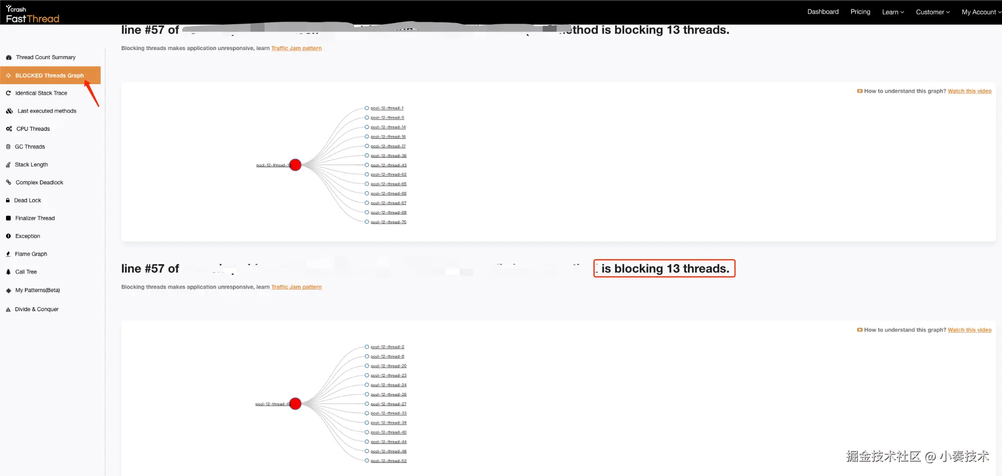 很快定位到阻塞其他线程的代码