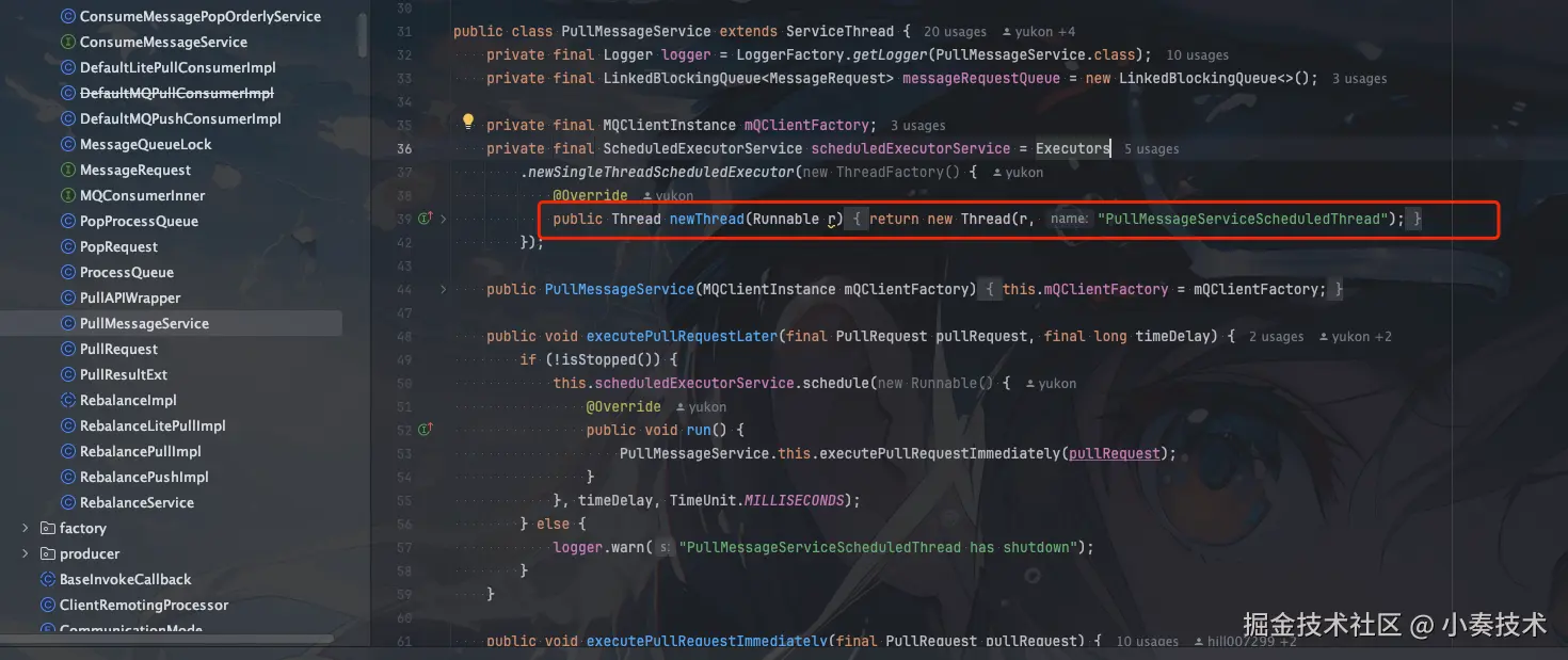 PullMessageService开头的线程, 主要用来拉去消息