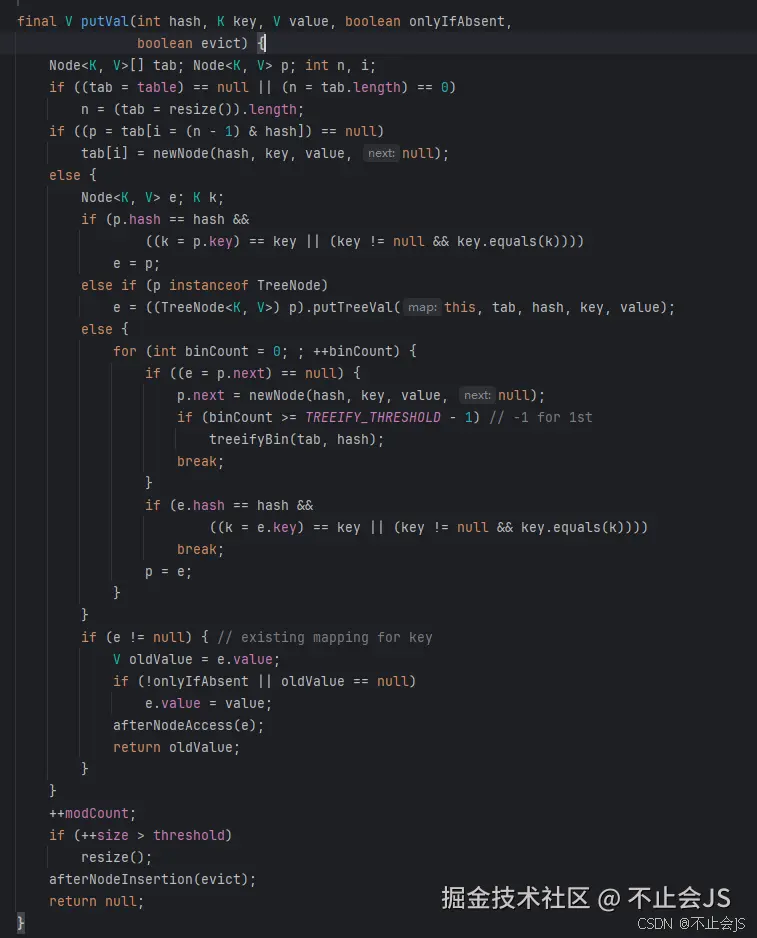 了解了Node的结构后,在看回putVal的代码