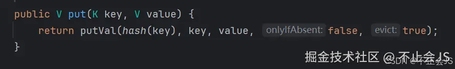 可以看到这个方法没有做实现,首先这绝对不是一个接口,没有实现是因为 hashCode方法的是实现是内置在JVM中的c++语言实现的,所以在java代码中看不到。当获取完hash值后,我们便可以进入第一步的putVal方法中进行添加key和value了。