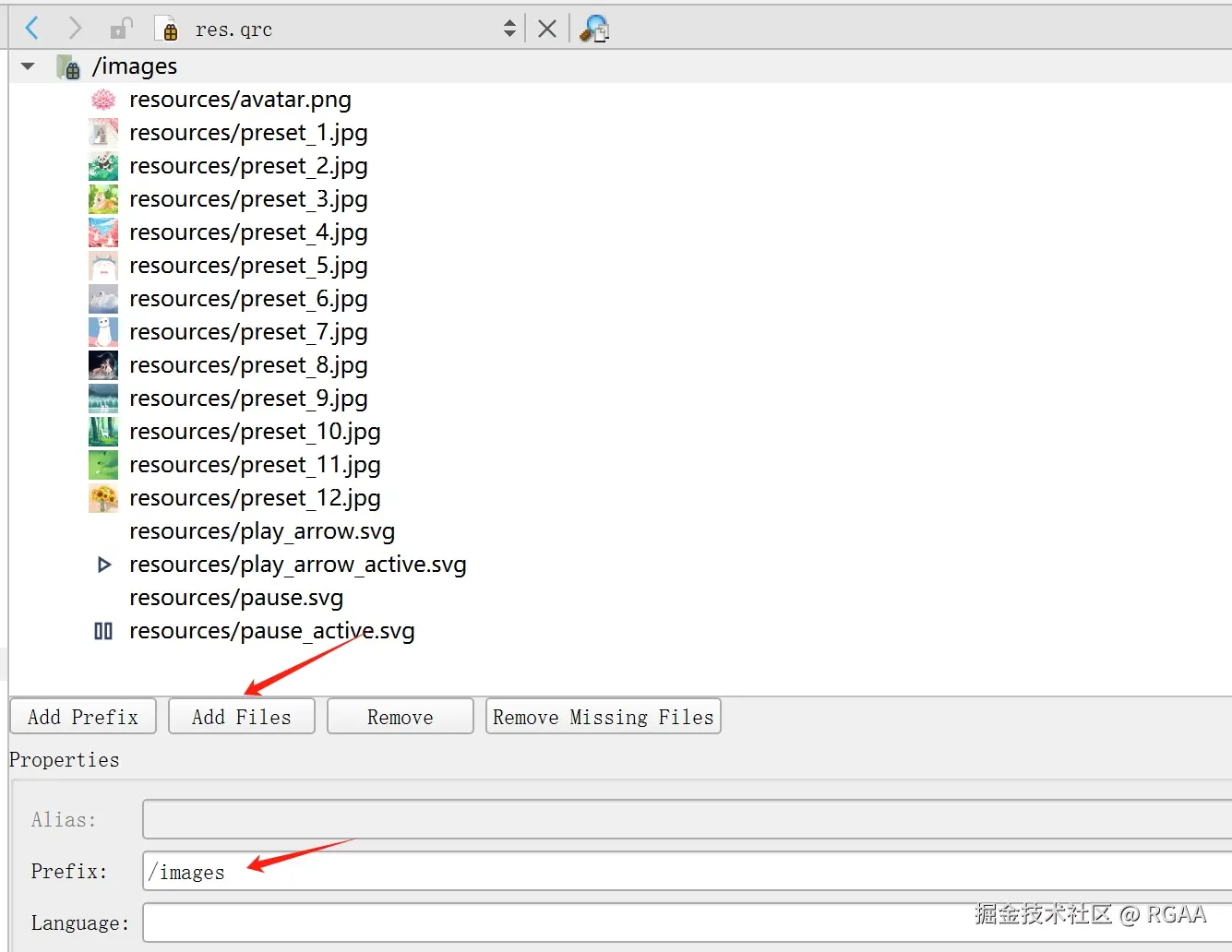 1.6 将图片添加到res.qrc里面