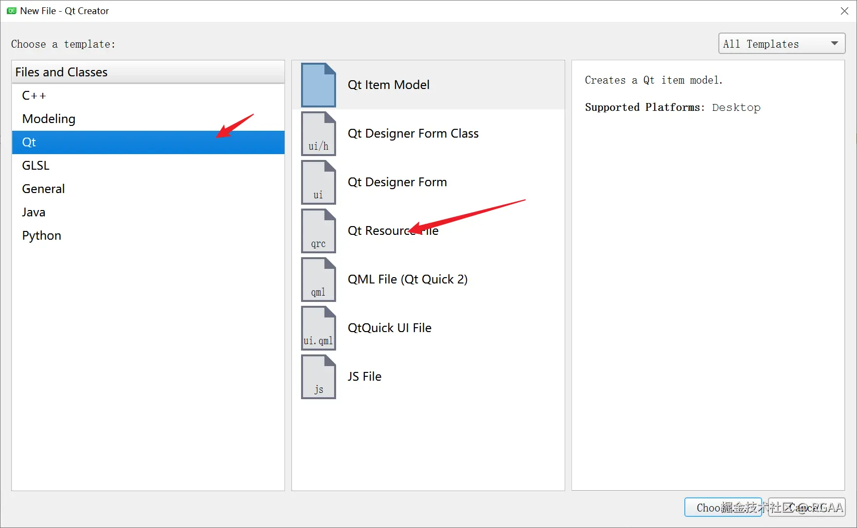 1.2 选择Qt,然后选择 Qt Resource File