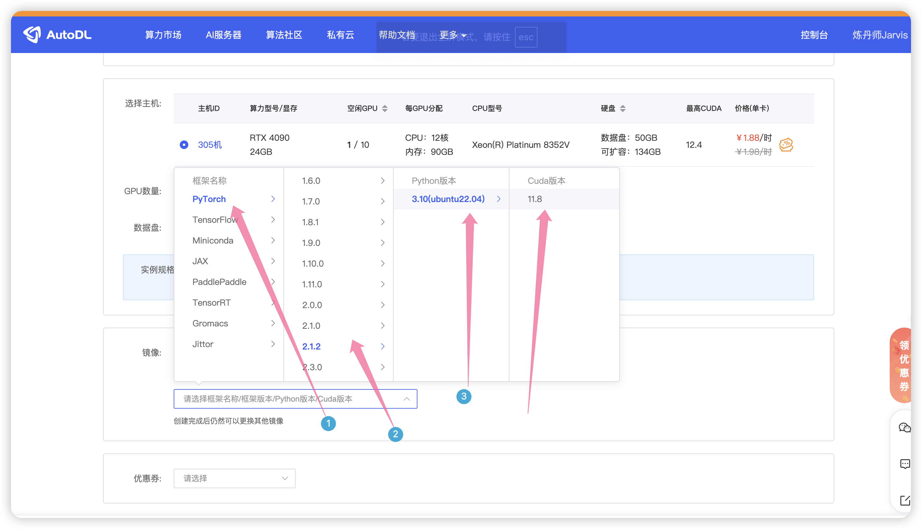 这里使用autodl 机器学习平台,官网地址:https://www.autodl.com/market/list