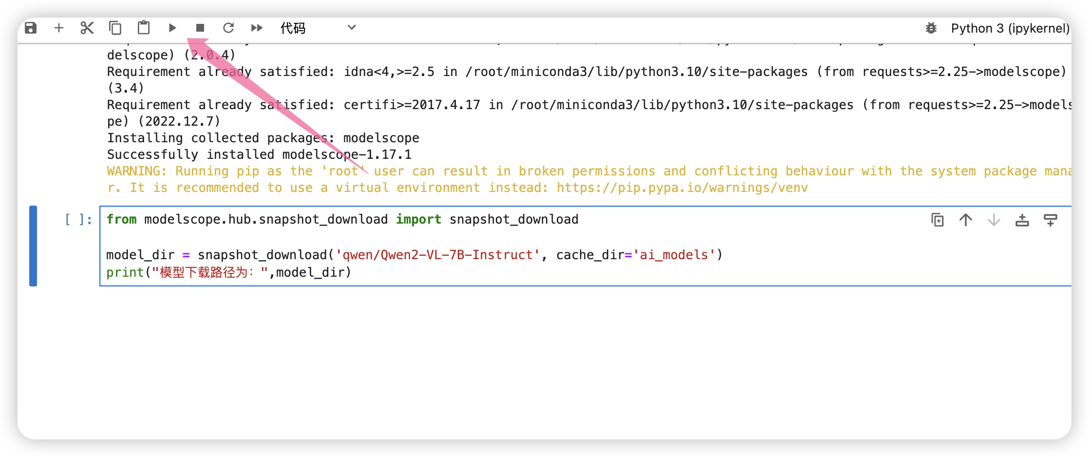 继续键入如下代码下载模型:
