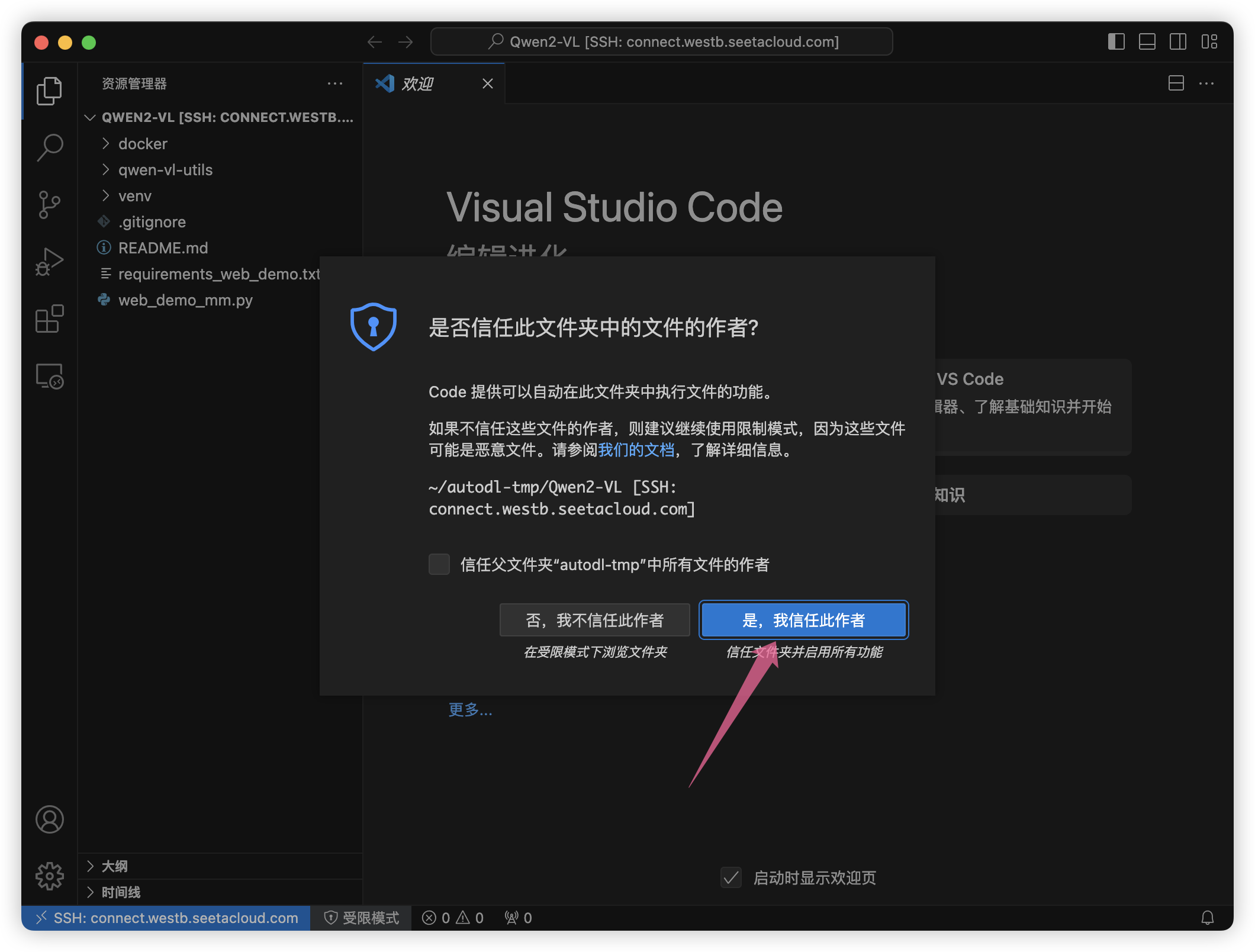 打开Vsocode,远程连接。