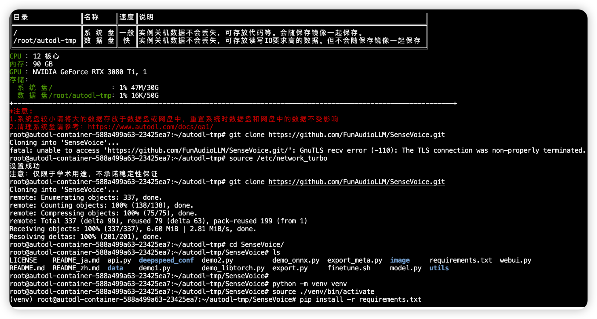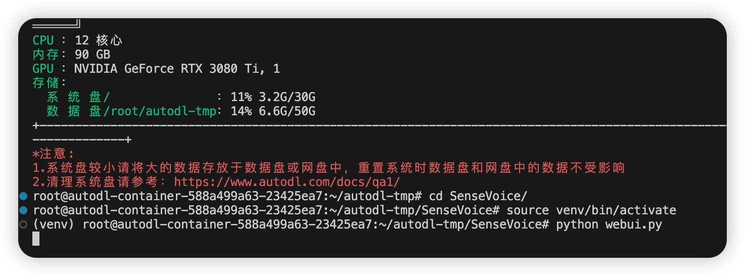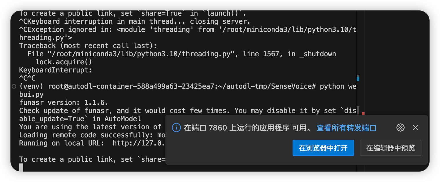 然后回到终端,进入SenseVoice目录。