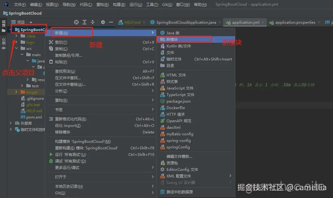 功能子模块部分需要将启动类那一行注释功能模块不需要启动类。