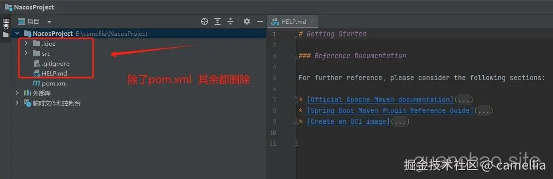 删除图上红框标注的所有文件,只保留pom.xml