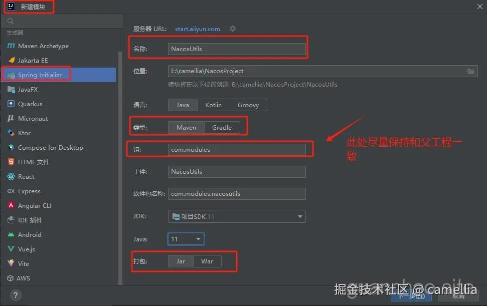 建议创建子模块的包名是一致的,我这里使用的组名是:com.modules(建议每个子模块使用的组名都一致)