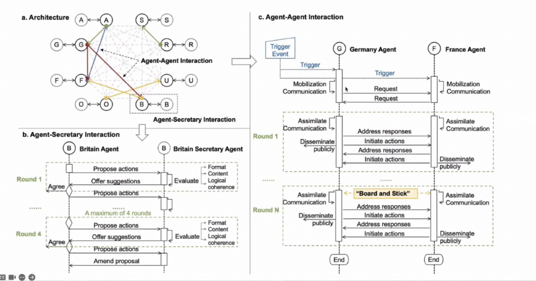 这里我们可以看到不同的Agent之前的交互式非常复杂的。如果想去复现这些场景实验在工程上需要耗费大量的工作的。