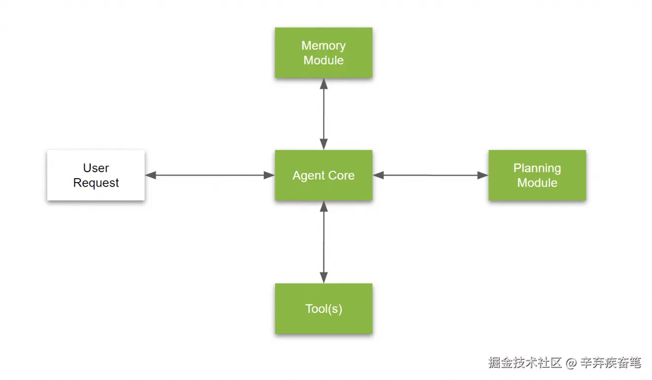 - 「工具API」:代理调用由LLM管理的工具API来执行特定任务,如搜索航班或酒店信息。