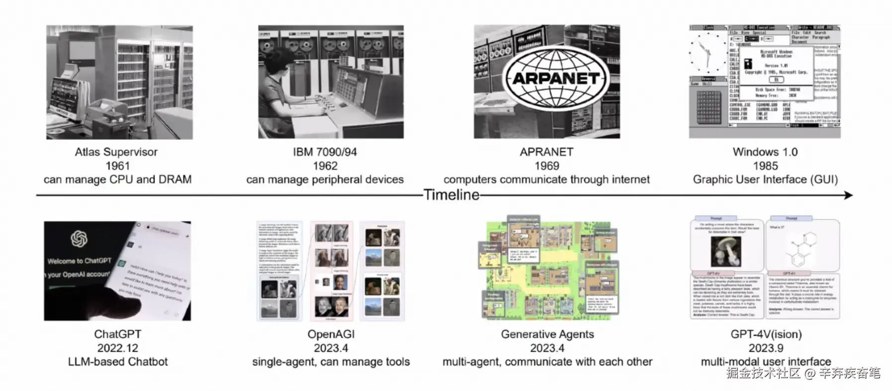 对比看下计算机操作系统的发展路径,更好的理解下LLM OS的发展路线。