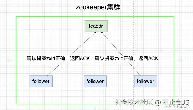 Follower在接受到Leader节点的提案后,会确认当前提案的zxid是不是正确的。如果正确,则会保存当前提案的zxid,并且执行提案的事务操作但不提交,并返回确认消息ACK,等待Leader再次发送消息时,提交事务更改。