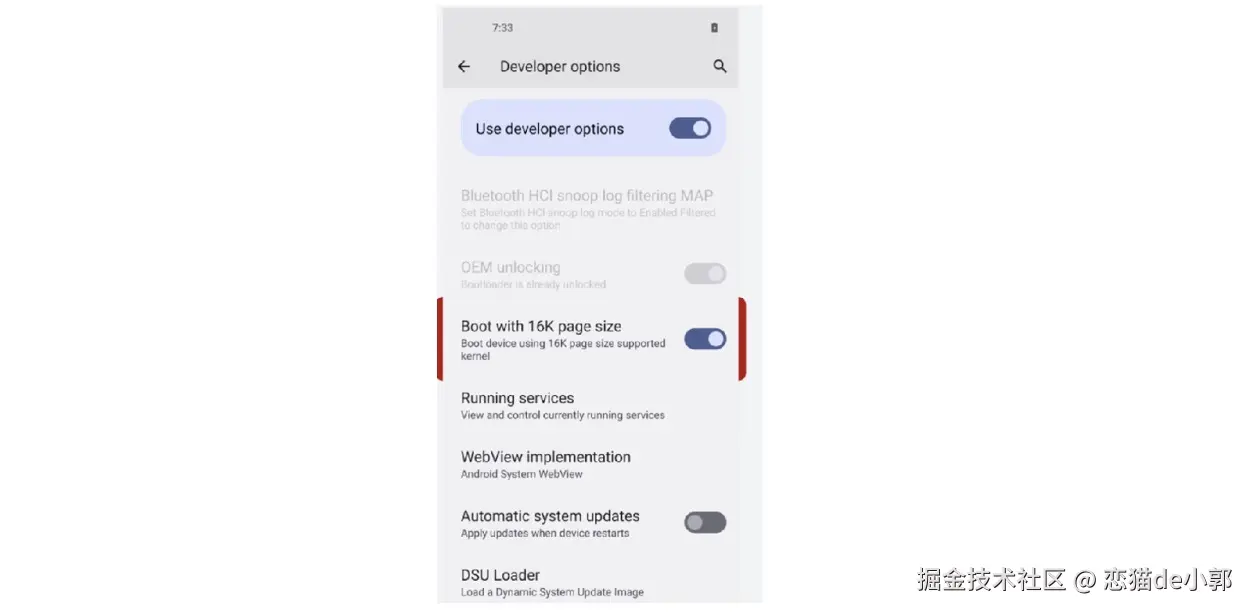 首先有一点大家可以放心,这里的 16 KB 页面大小支持将作为开发人员选项在选定设备上提供,简单来说,也就是 Android 15 暂时不会强制适配,开不开心?又可以苟一年了。